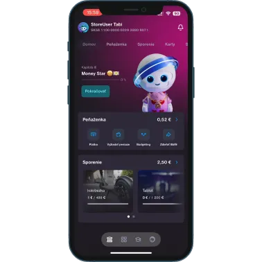 Po otvorení Detského účtu môžete svojmu dieťaťu aktivovať bankovú časť aplikácie TABI – dieťa sa tak učí narábať s peniazmi v reálnom svete.