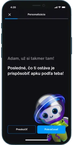 Aplikácia má edukačnú časť (zábavná hra aj bez účtu) a bankovú časť (dieťaťu môžete aktivovať až po otvorení Detského účtu).
